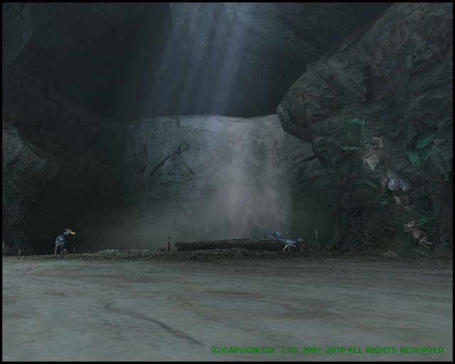 薄暗いなか、自然にできた1本橋。危なくて重装備したハンターは渡れませんね。