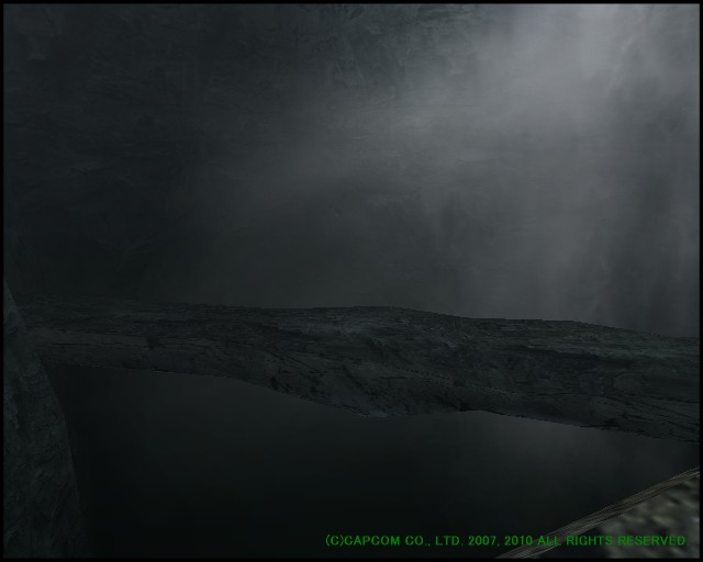 薄暗いなか、自然にできた1本橋。危なくて重装備したハンターは渡れませんね。